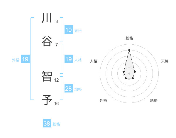 川谷 智予さんの総格は38画の4点!