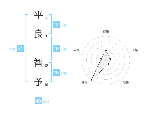 平良 智予さんの外格は21画の5点!