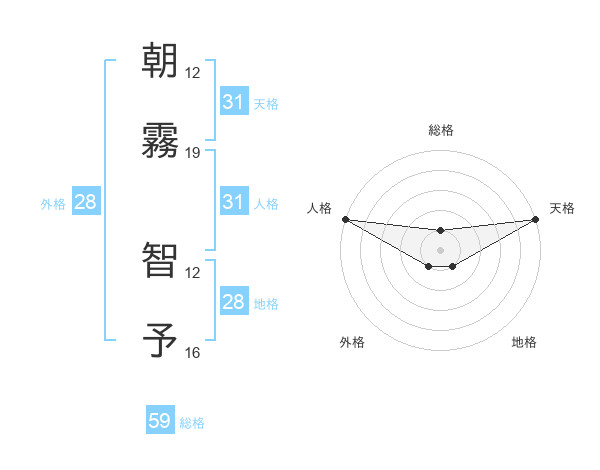朝霧 智予さんの天格は31画の5点!