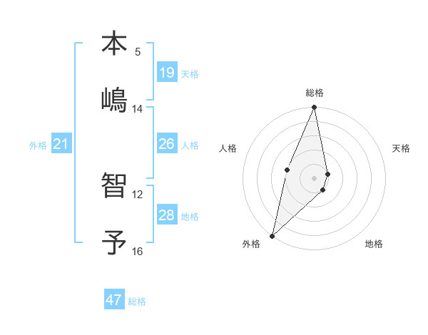 本嶋 智予さんの外格は21画の5点!