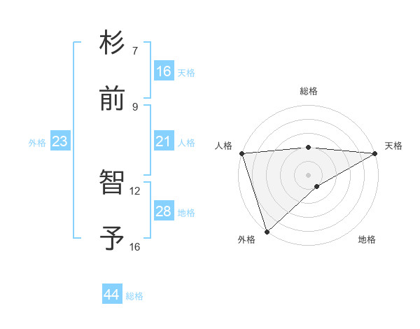 杉前 智予さんの天格は16画の5点!