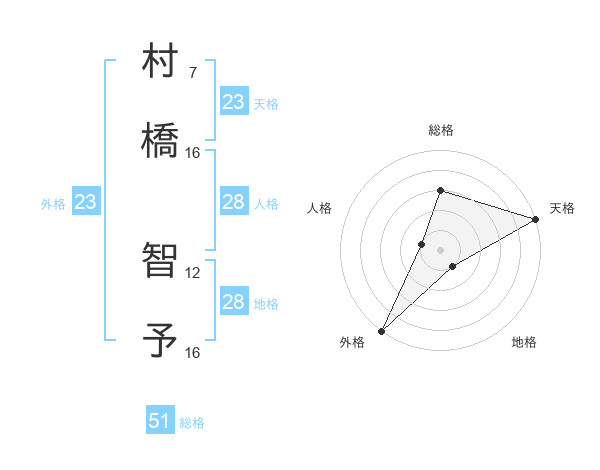 村橋 智予さんの総格は51画の3点!