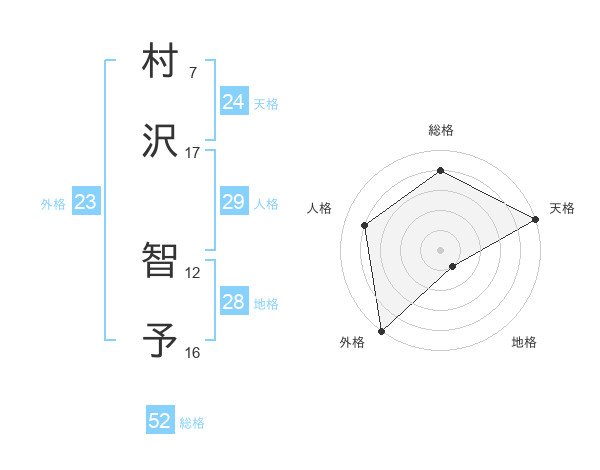 村沢 智予さんの天格は24画の5点!