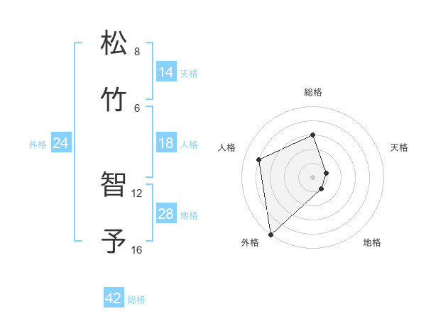 松竹 智予さんの外格は24画の5点!