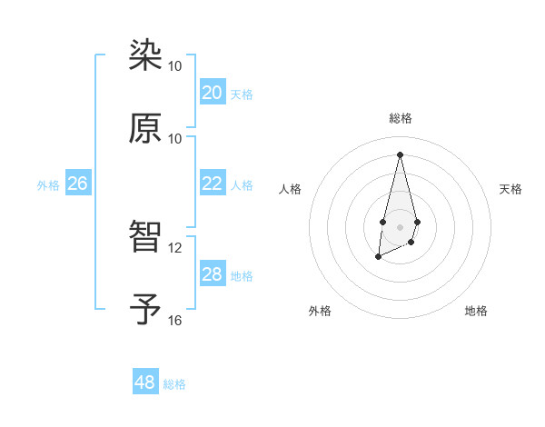 染原 智予さんの総格は48画の4点!