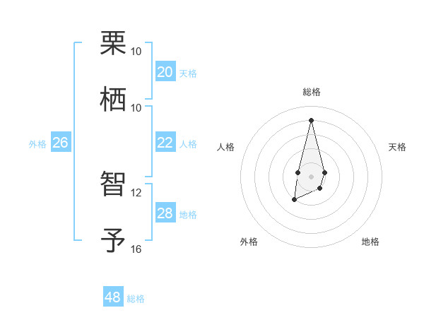 栗栖 智予さんの総格は48画の4点!
