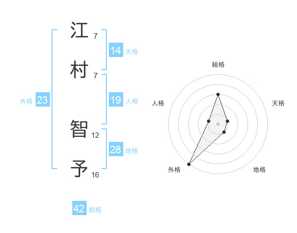 江村 智予さんの外格は23画の5点!