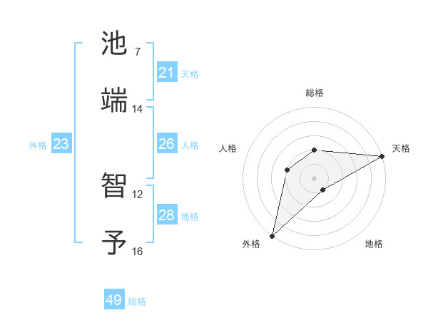 池端 智予さんの総格は49画の2点!