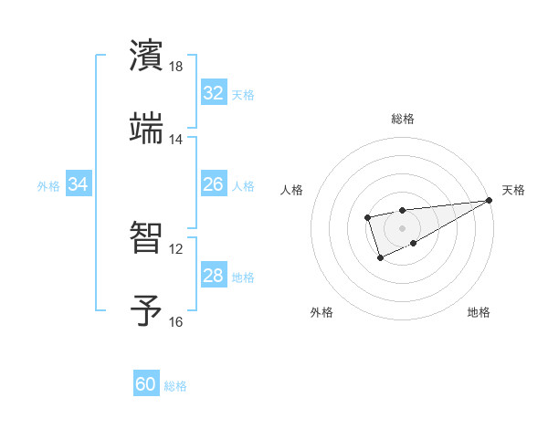 濱端 智予さんの外格は34画の2点!