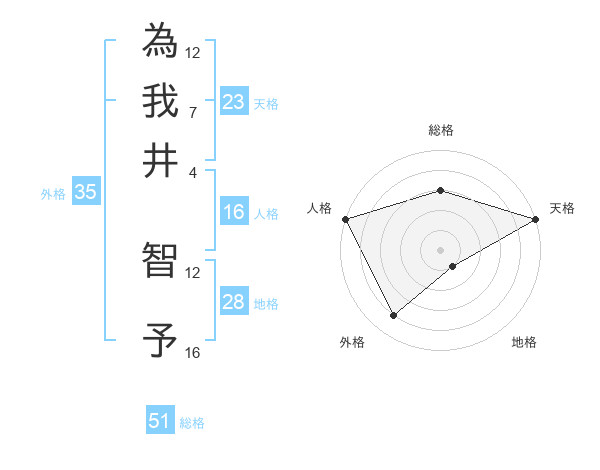 為我井 智予さんの人格は16画の5点!