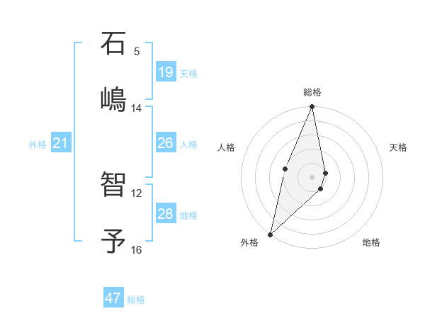 石嶋 智予さんの総格は47画の5点!