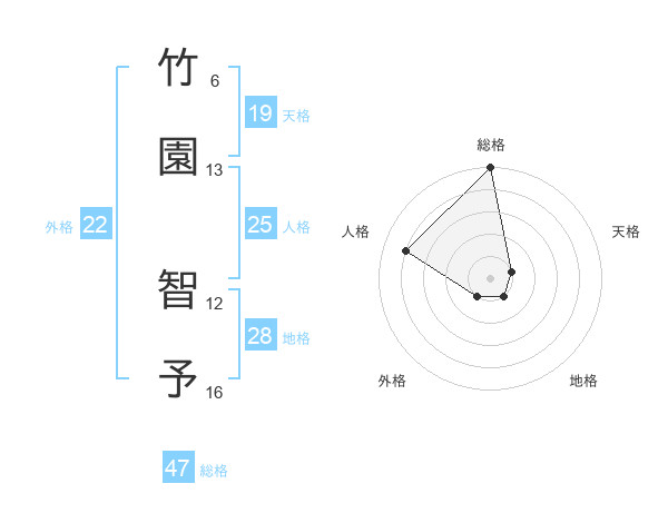 竹園 智予さんの地格は28画の1点!