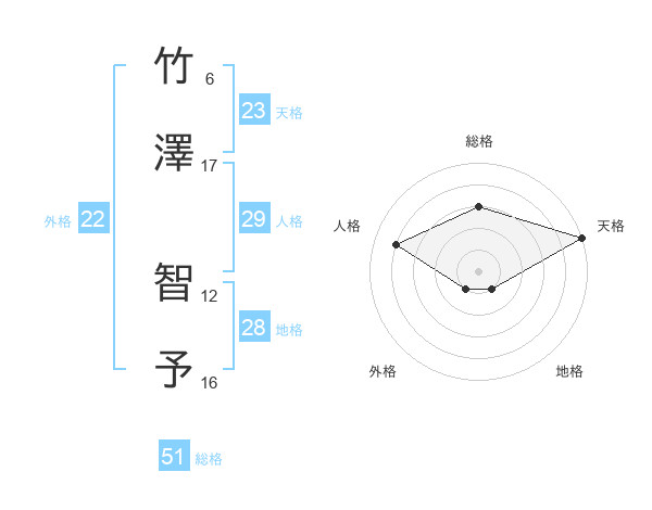 竹澤 智予さんを姓名の画数から五運を鑑定
