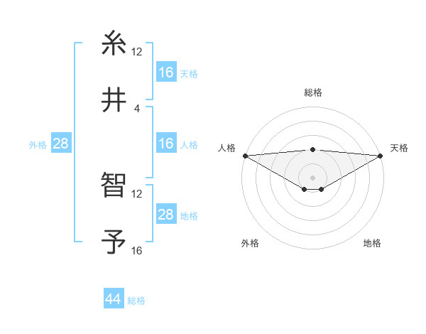 糸井 智予さんの天格は16画の5点!