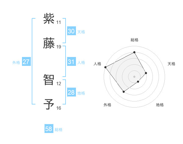 紫藤 智予さんの総格は58画の4点!