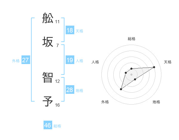 舩坂 智予さんの地格は28画の1点!