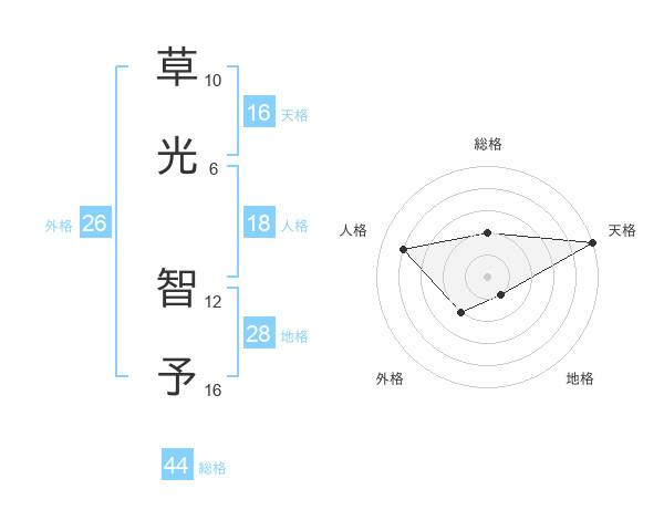 草光 智予さんの天格は16画の5点!