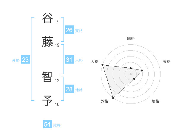 谷藤 智予さんの人格は31画の5点!
