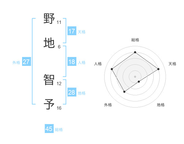野地 智予さんの天格は17画の4点!