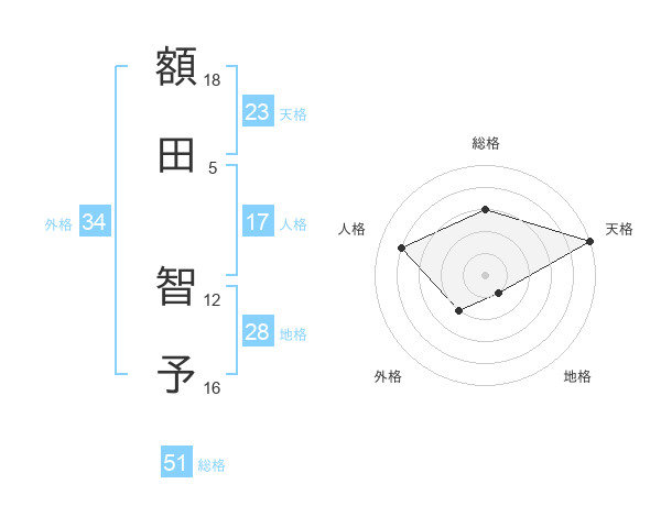 額田 智予さんの総格は51画の3点!