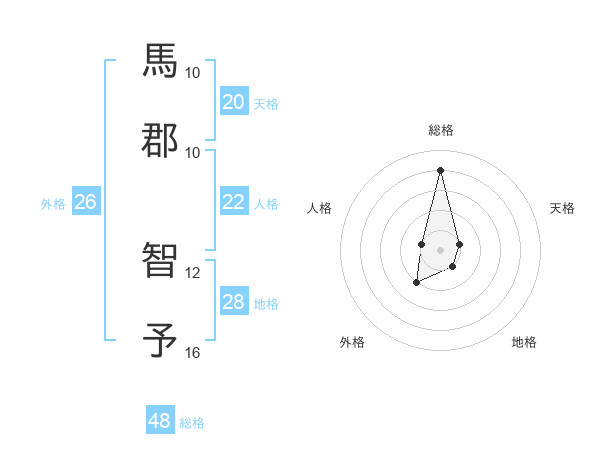 馬郡 智予さんを姓名の画数から五運を鑑定