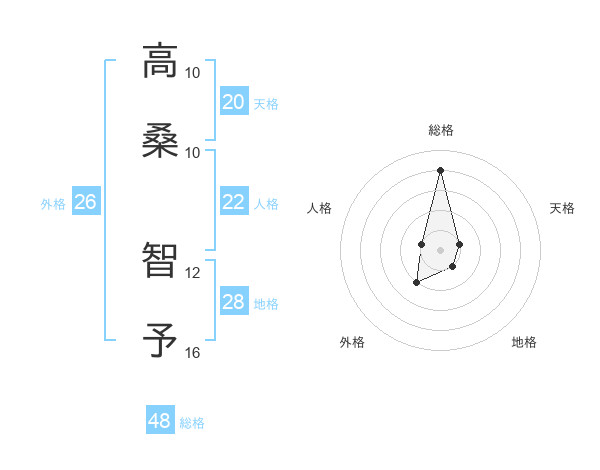 高桑 智予さんの総格は48画の4点!