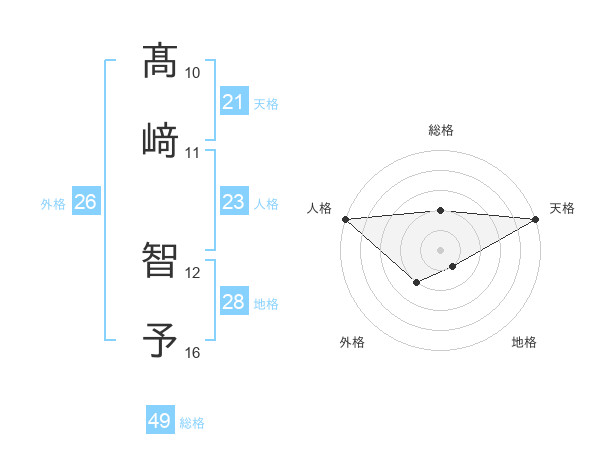 髙﨑 智予さんの天格は21画の5点!