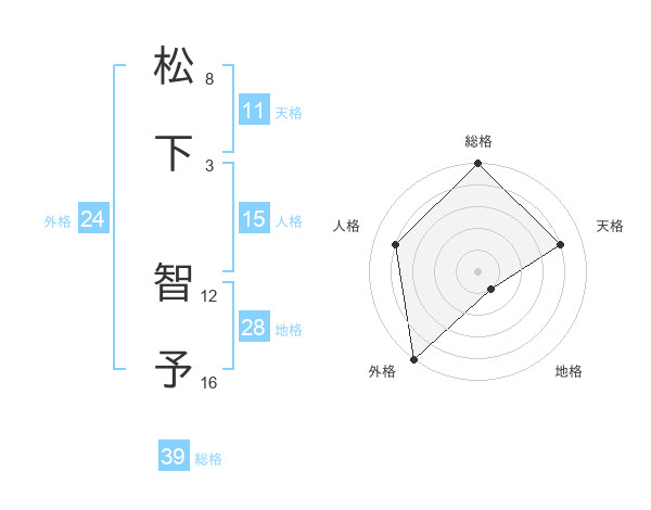 松下 智予さんの総格は39画の5点