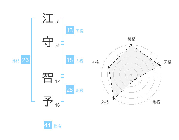 江守 智予さんの外格は23画の5点!
