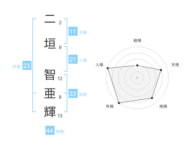 二垣 智亜輝さんの地格は33画の4点!