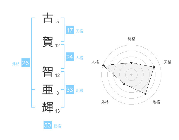 古賀 智亜輝さんの総格は50画の2点!