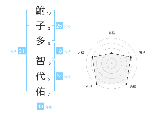 鮒子多 智代佑さんを姓名の画数から五運を鑑定