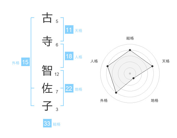 古寺 智佐子さんの総格は33画の4点!