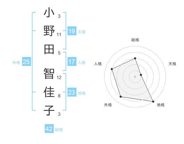 小野田 智佳子さんの総格は42画の3点!