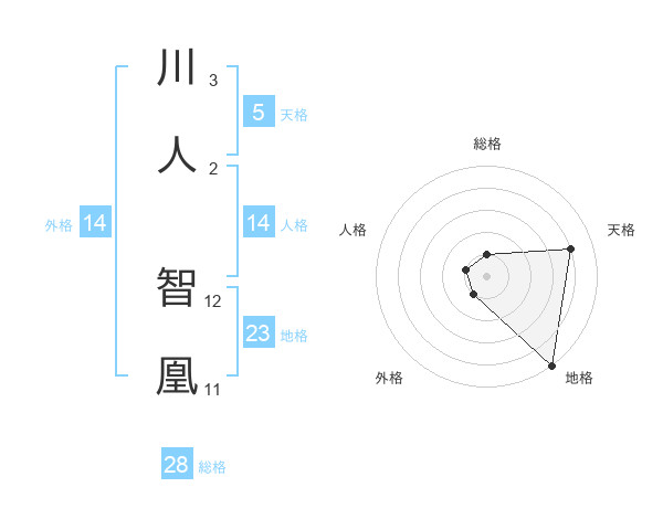 川人 智凰さんの総格は28画の1点!