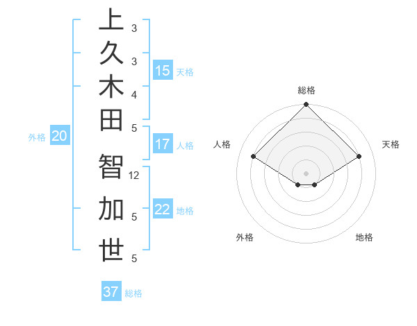 上久木田 智加世さんの総格は37画の5点!