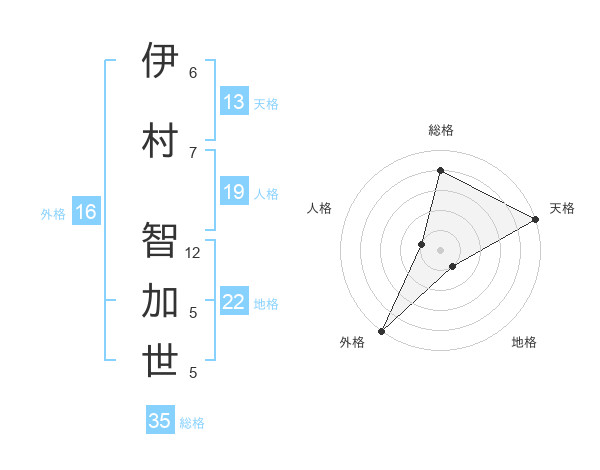 伊村 智加世さんの天格は13画の5点!