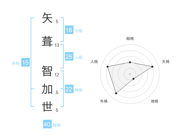 矢葺 智加世さんを姓名の画数から五運を鑑定