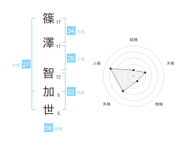 篠澤 智加世さんを姓名の画数から五運を鑑定