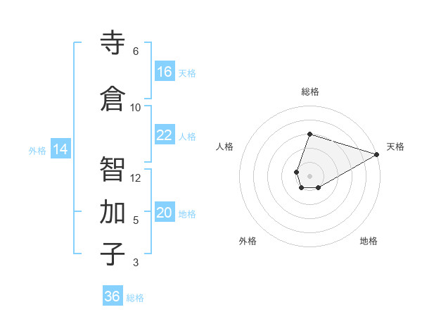 寺倉 智加子さんを姓名の画数から五運を鑑定