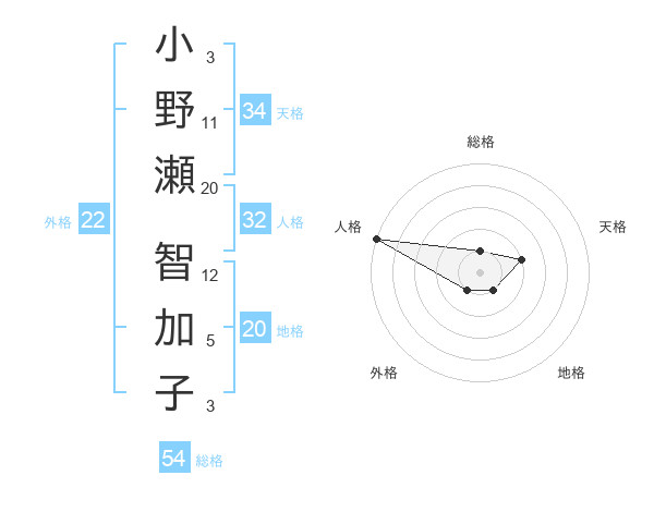 小野瀬 智加子さんを姓名の画数から五運を鑑定