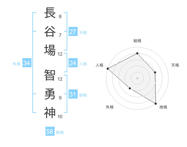 長谷場 智勇神さんを姓名の画数から五運を鑑定