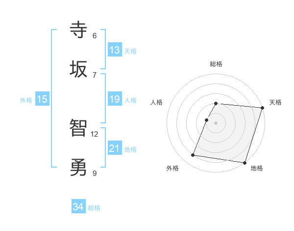 寺坂 智勇さんの天格は13画の5点!