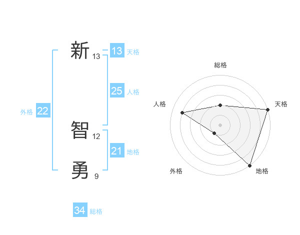 新 智勇さんの地格は21画の5点!