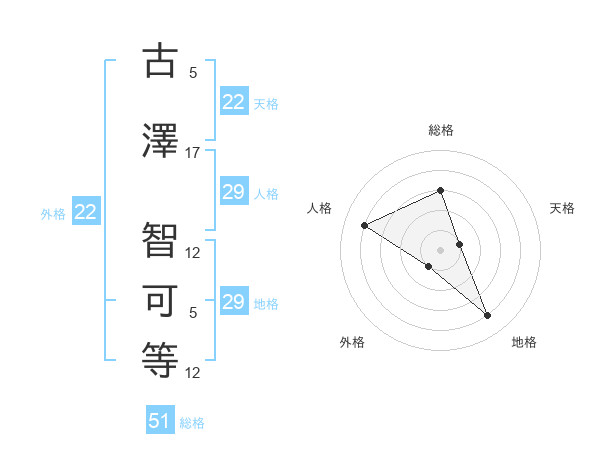 古澤 智可等さんを姓名の画数から五運を鑑定