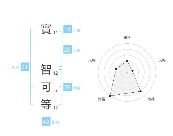 實 智可等さんの天格は14画の1点!