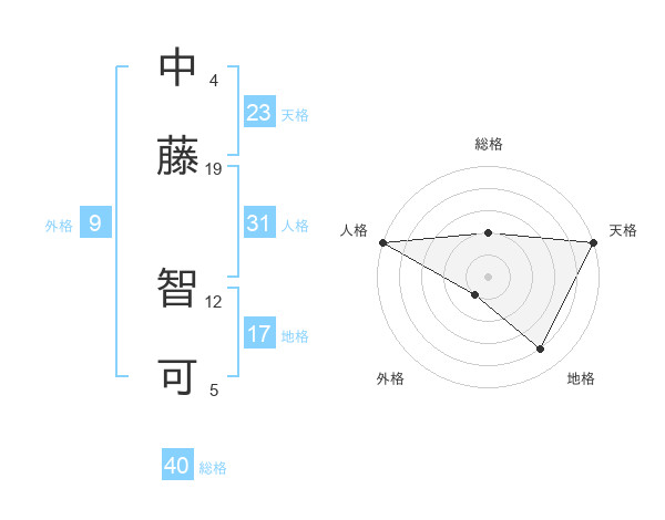 中藤 智可さんの天格は23画の5点!