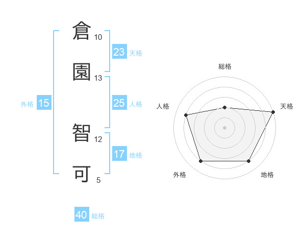 倉園 智可さんの天格は23画の5点!