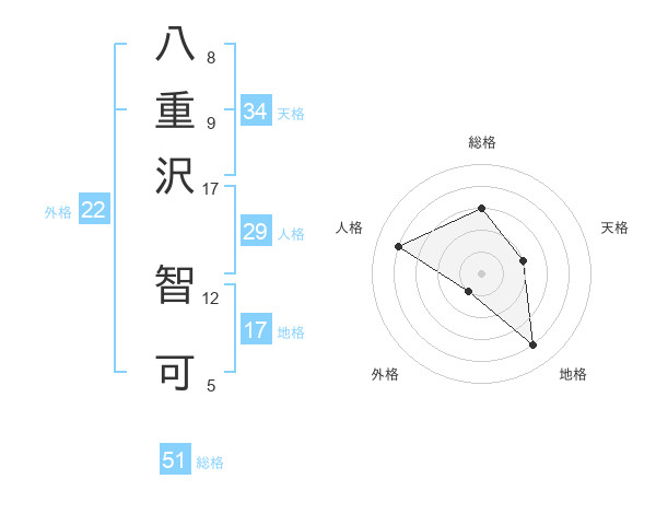 八重沢 智可さんを姓名の画数から五運を鑑定