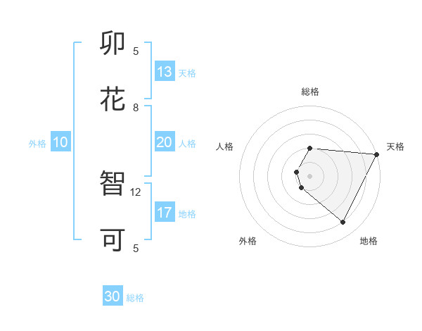 卯花 智可さんを姓名の画数から五運を鑑定